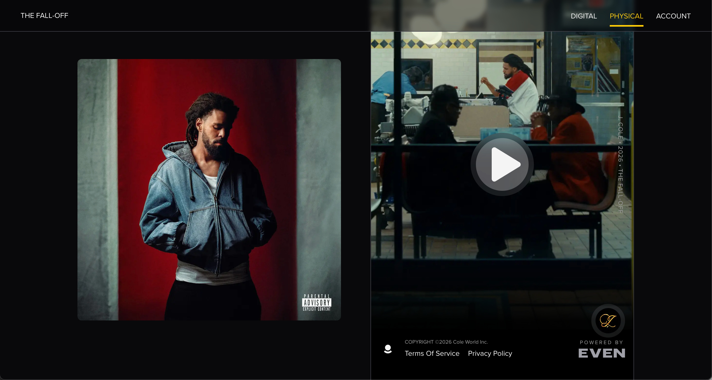 EVEN has also served as the pre-order hub for his February album “The Fall Off.” During the initial announcement, fans were directed to www.thefalloff.com, where they could pre-order the limited-edition vinyl, a digital version of the album, and an alternate-cover CD version.